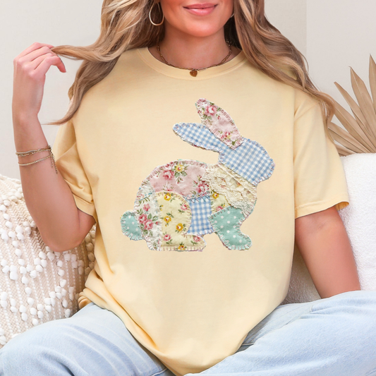FLORAL BUNNY PATCHWORK - CLEAR FILM SCREEN PRINT