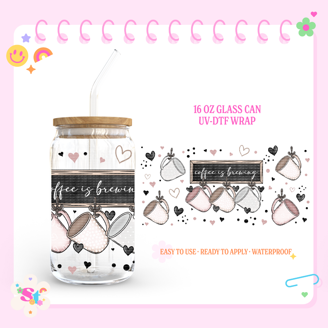 COFFEE IS BREWING - 16 OZ UV DTF
