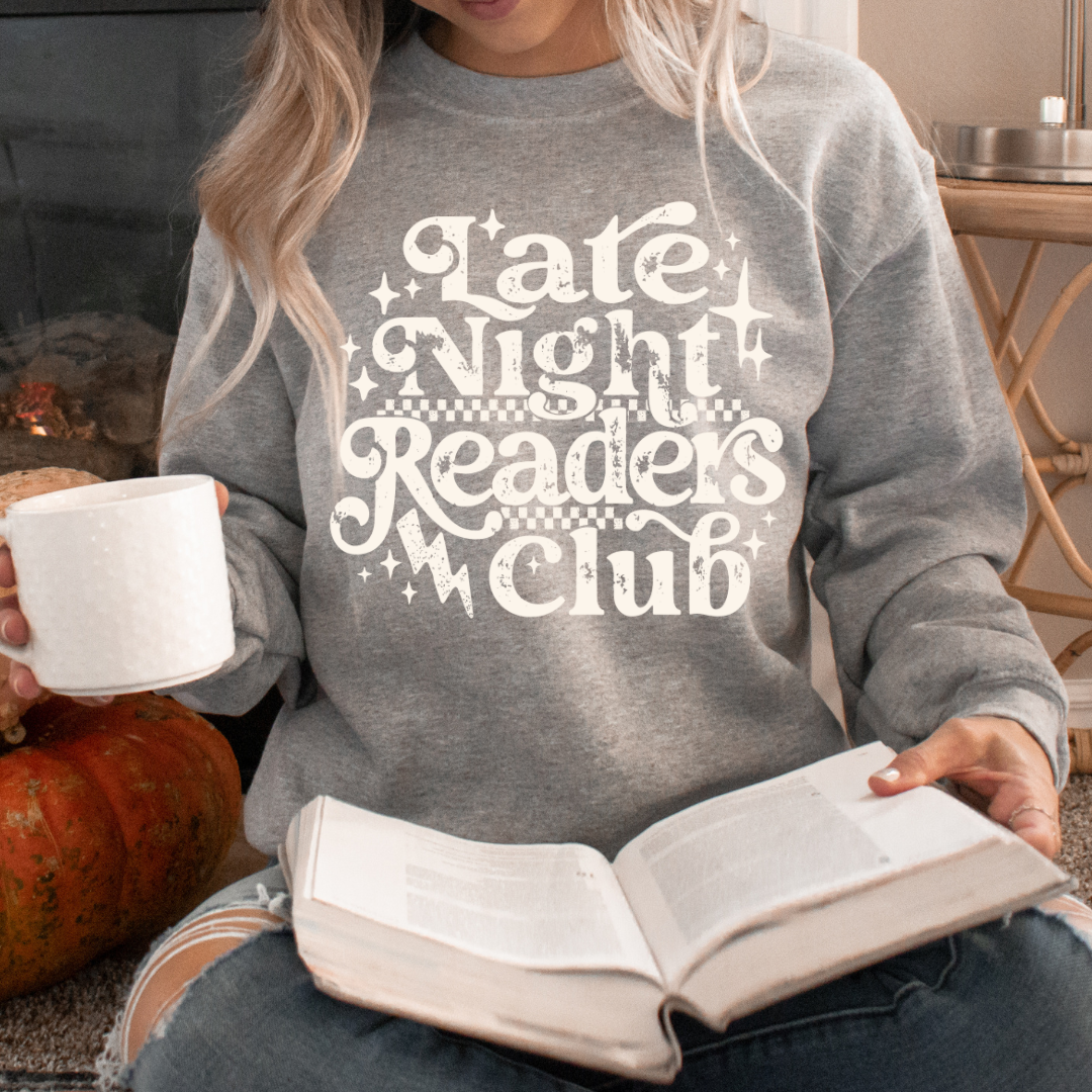 LATE NIGHT READERS CLUB (WHITE) - SINGLE COLOR SCREEN PRINT