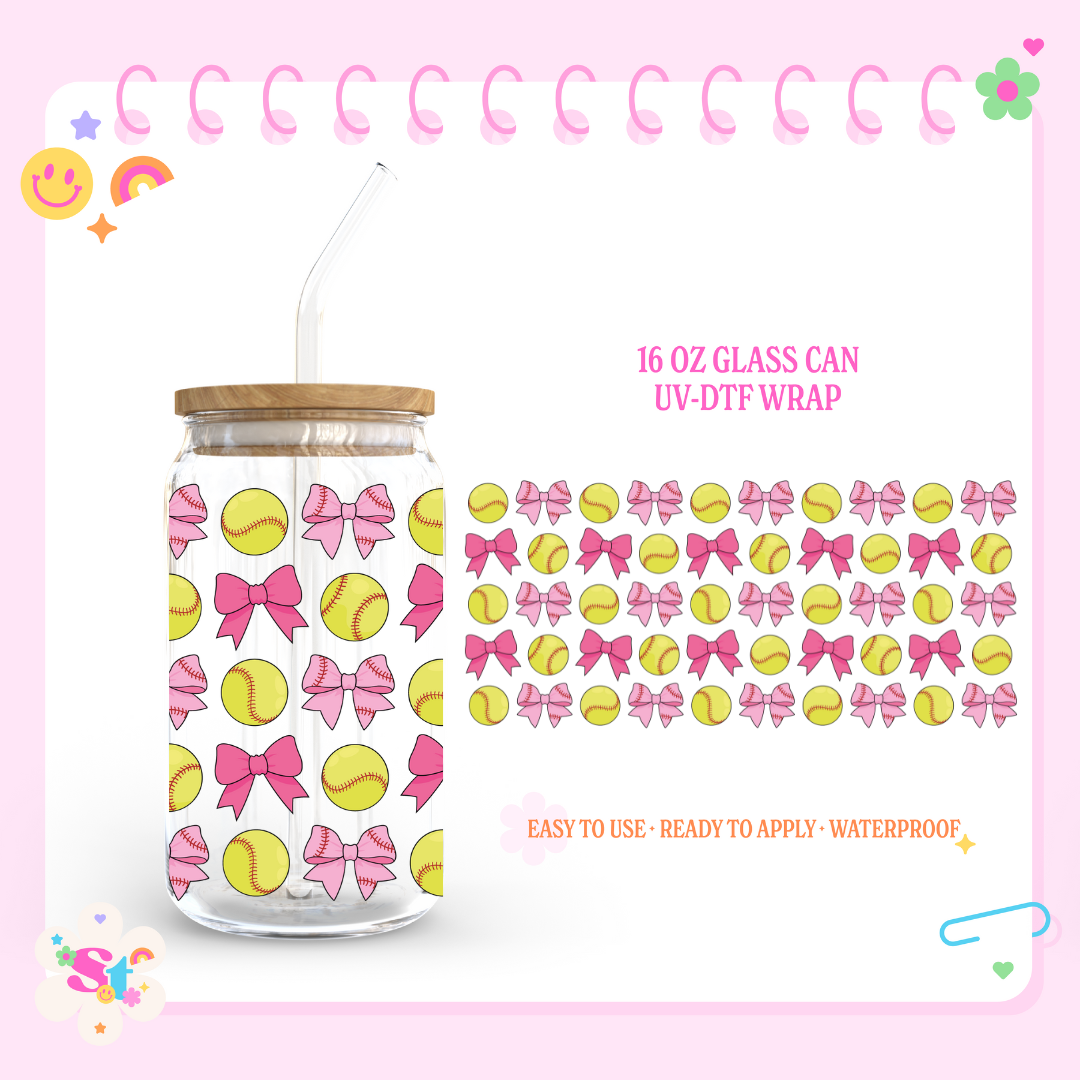 SOFTBALL & BOWS - 16 OZ UV DTF